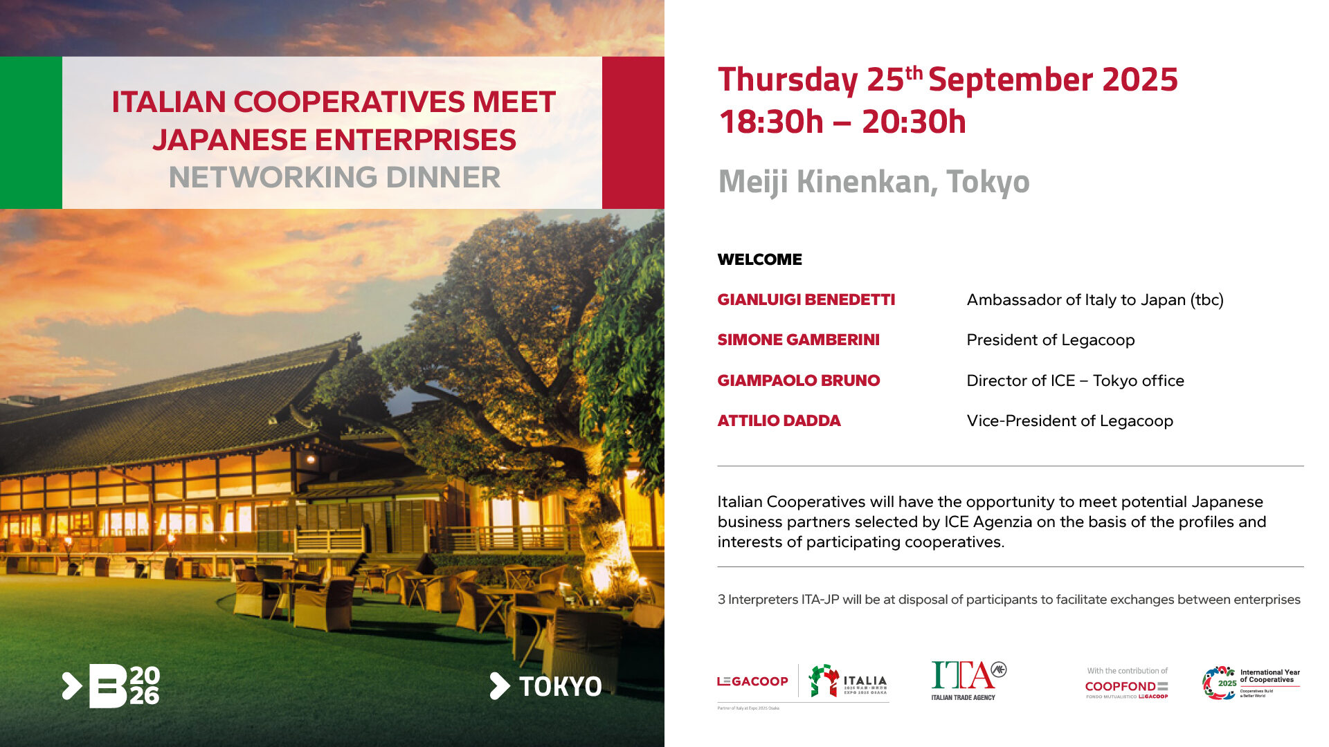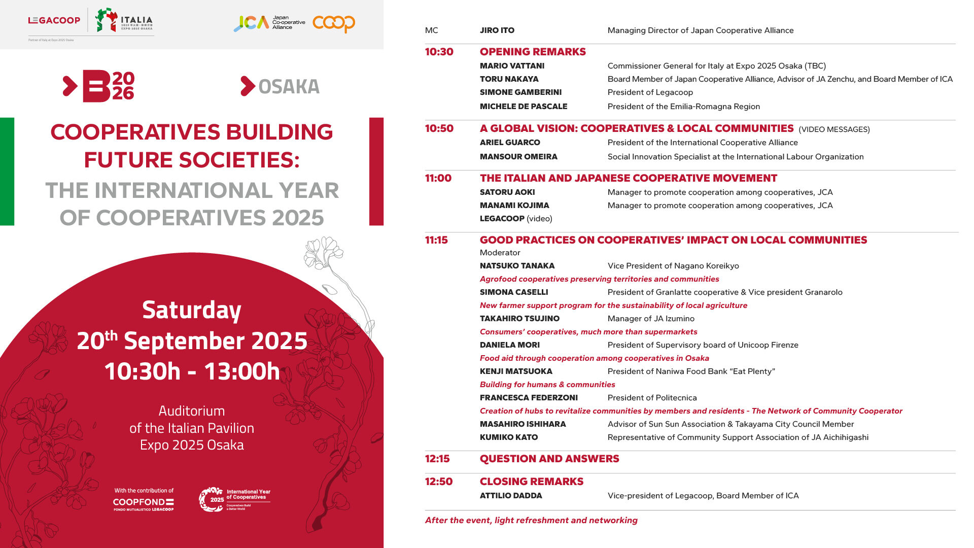 La partecipazione di Legacoop a Expo 2025 Osaka è un’occasione per valorizzare il rapporto con il movimento cooperativo giapponese, e sviluppare nuove partnership per il Sistema Italia in Asia.